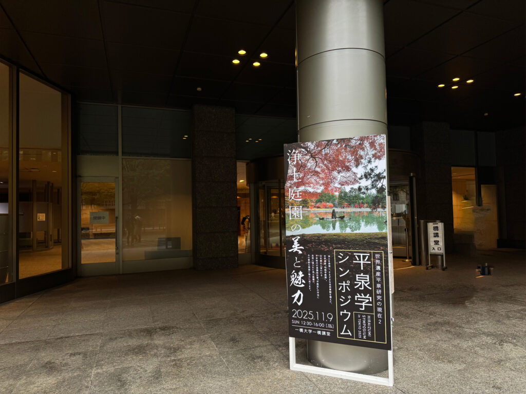今回のシンポジウムは「世界遺産平泉の現在2-浄土庭園の美と魅力-」をテーマに、毛越寺を中心とした浄土庭園や史跡整備について、さまざまな角度から講演が行われました。会場には非常に多くの方が参加され、平泉への関心の高さが伺えました。